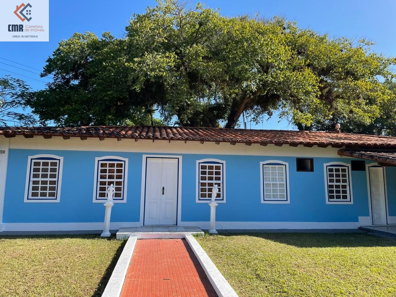 Tendo a casa principal de 250 m², com recepção ampla, 7 salas, 2 banheiros, cozinha, lavabo, gramado em frente.